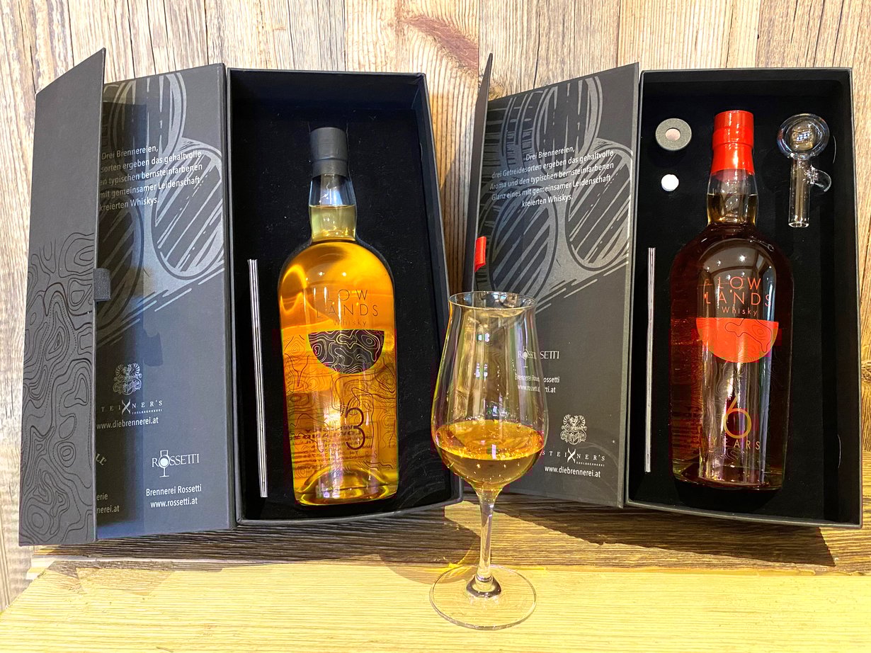 Der erste Jahrgang des Lowlands Whisky präsentiert sich mild, blumig und harmonisch – das Ergebnis echter Tiroler Handwerkskunst und sorgfältiger Fassreifung.